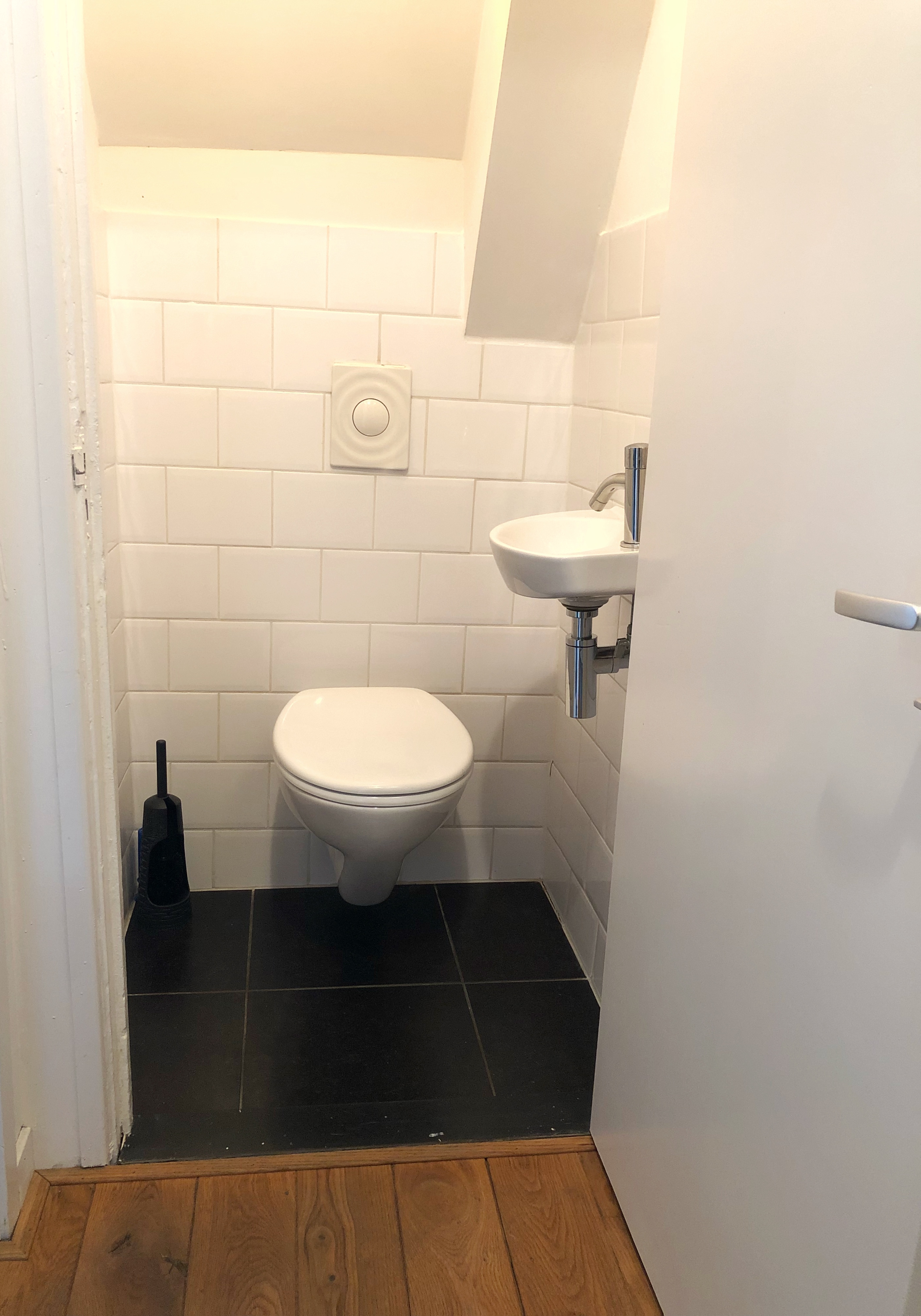 Well laid out double ground floor apartment of approx. 115 m² in a former shop with high ceilings. Located on the ground floor and first floor overlooking the water