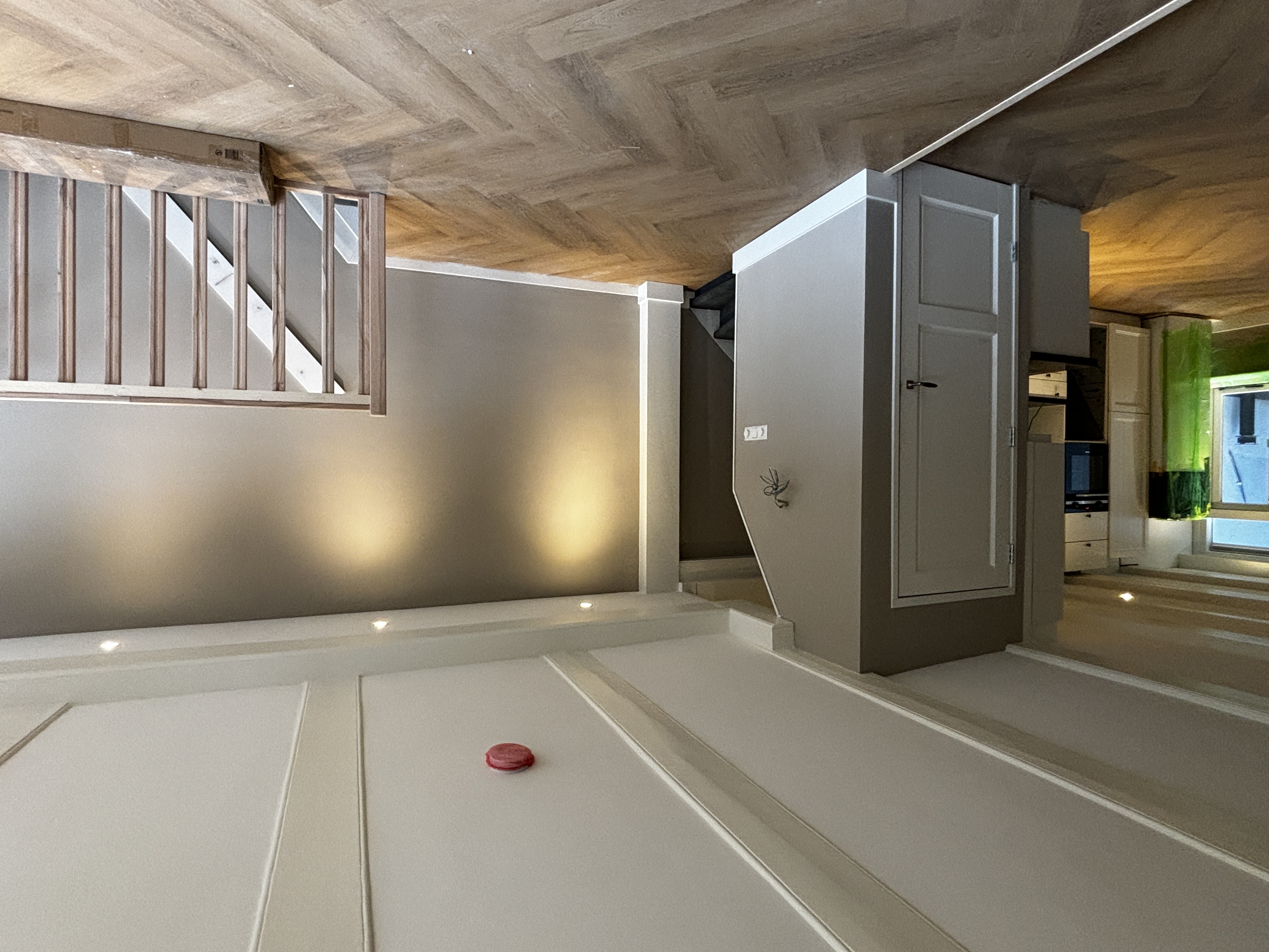 This spacious apartment of approximately 65 sqm (700 sq ft) offers a unique layout and modern comfort. Through the private entrance on the ground floor, you’ll arrive at your own hallway and staircase leading to the first floor of the property. The living room is generously sized and seamlessly connected to the open kitchen at the rear, creating a cozy and welcoming living space.